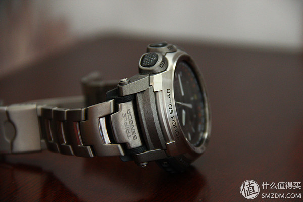 日本产,品质还是有保障的,就是有些地方缝隙会比较大,容易积累污物,但是瑕不掩瑜。背面有两个橡胶垫,更加符合手腕较细的人佩戴。最后说说电波的功能,个人认为用处不是很大,本来就走时很准,基本不用调表,三年我调表的次数屈指可数,官方说明每个月正负15秒的误差,但我感觉比这个小,用下来的话觉得比标准时间稍快,仅仅是稍快而已。当然我是不拒绝电波的(主要没钱)所以有电波更好,没有也不用在意。松拓貌似是通过GPS校时,暂时没有发现误差。放几张上手图: