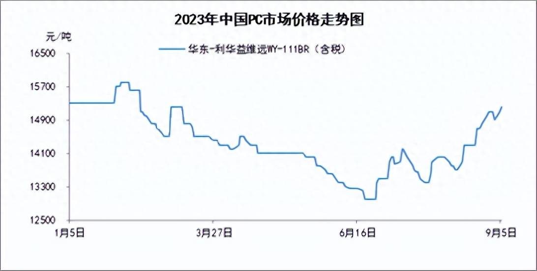 自8月14日商务部公告2023年第30号关于原产于台湾地区的进口聚碳酸酯反倾销调查初步裁定的公告发布后,PC市场价格上涨,业者心里预期价格上涨预计一周左右,但目前来看,反倾销对于PC市场来看,只能说是一个导火索而已。