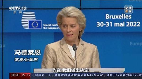 当地时间5月31日,欧盟委员会主席冯德莱恩宣布,欧盟27国领导人已就第六轮对俄制裁达成一致意见。