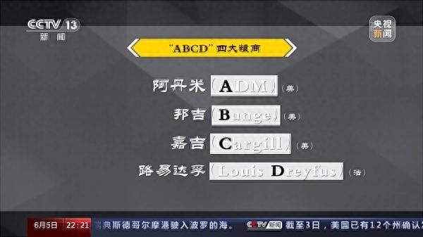 最著名的便是“ABCD”四大粮商,即美国的阿丹米(ADM)、邦吉(Bunge)、嘉吉(Cargill)和法国的路易达孚(Louis Dreyfus)集团。巅峰时“ABCD”四大家曾经掌控着全球80%的粮食交易量。