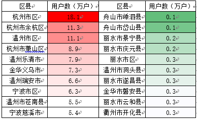 8月全省三阶梯增加的用户中,排名前十、后十区县如下: