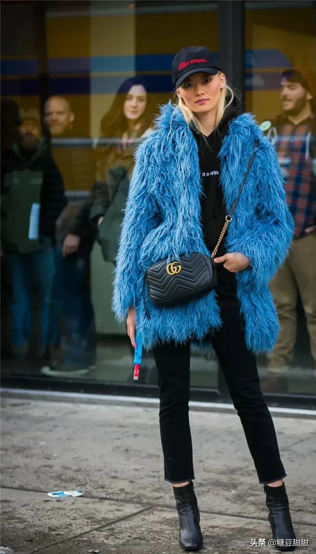 在冬季穿件宝石蓝色的单品给人一种静谧的时尚感,想不显气质好都难。