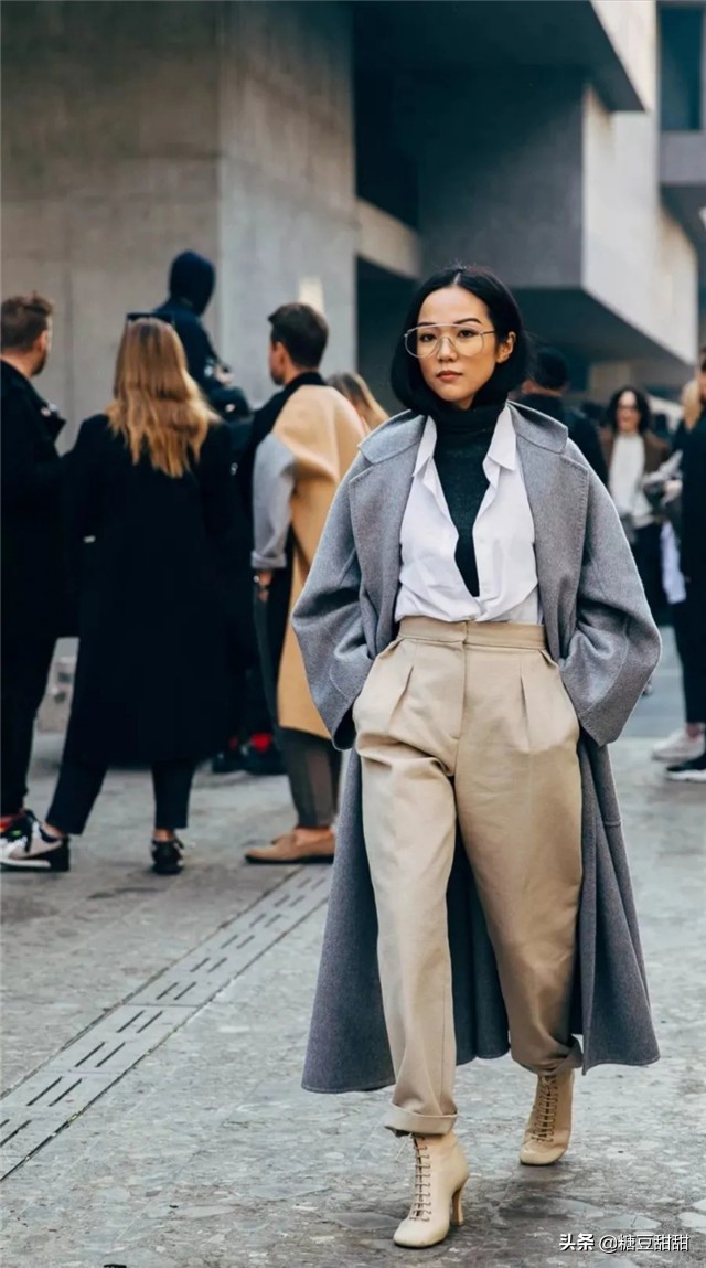 了,将淡漠灰色与大衣融合到一起,不但有百搭的效果,还透露着高级感和时尚感。