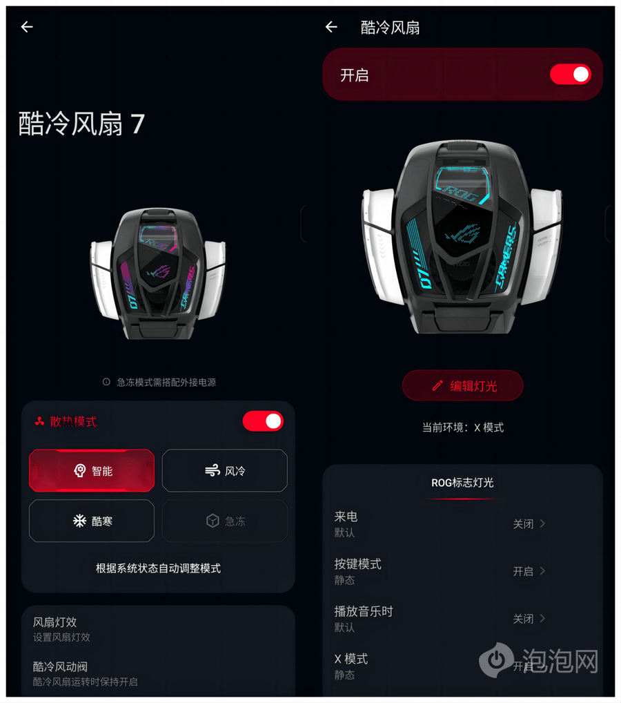酷冷风扇7与以往ROG推出的半导体制冷风扇相比,主要的不同是在风扇上加入了一颗低音扬声器,在连接手机后可以配合手机组建一个简单的2.1声道,可以带来更沉浸式的音效表现。