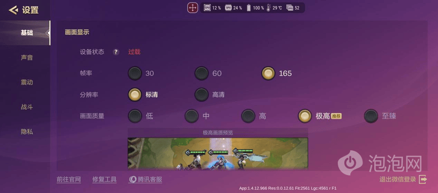 而且游戏精灵还可以开启游戏实时信息的查看,可以很直观的看到游戏运行的帧率、手机的温度以及对CPU以及GPU的使用情况。