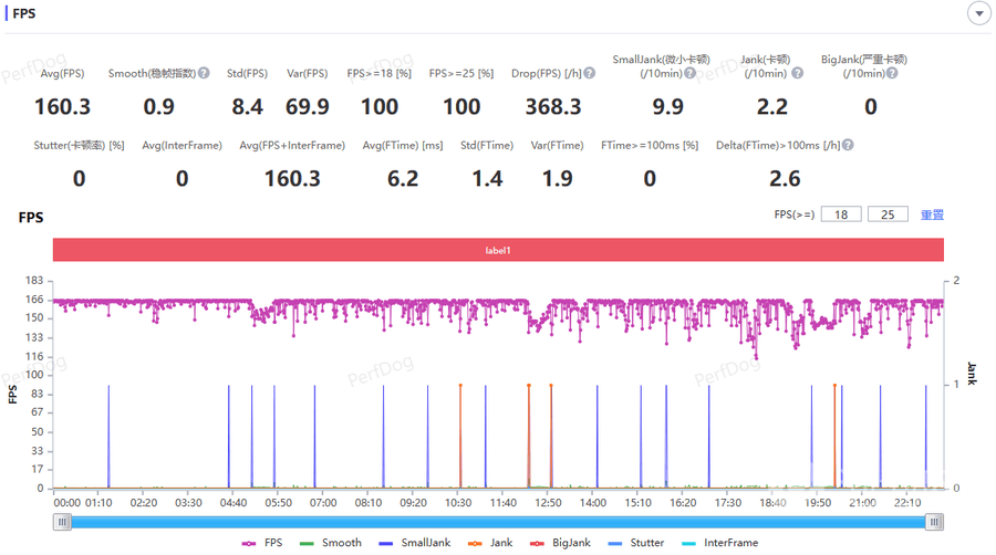 《和平精英》在流畅画质下可以开启极限帧率,从而以60帧的帧率运行游戏,经过一局游戏的测试,PerfDog显示平均帧率为59.9FPS。帧率曲线显示,游戏过程流畅度还是非常不错的,配合AirTriggers肩键有着优秀的游戏体验。