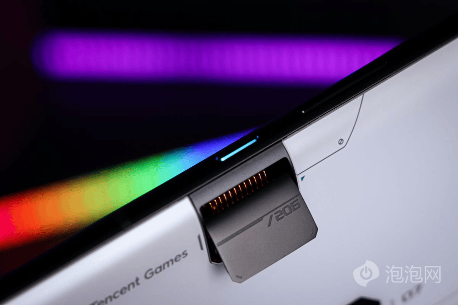 接口方面,腾讯ROG游戏手机7 Pro采用了两个充电接口,分别位于机身的底部和左侧,当游戏时需要充电,可以使用左侧中框处的充电接口充电,不会对游戏体验造成影响,此外,中框处的充电接口也用于安装ROG酷冷风扇,为手机带来更加高效的散热。
