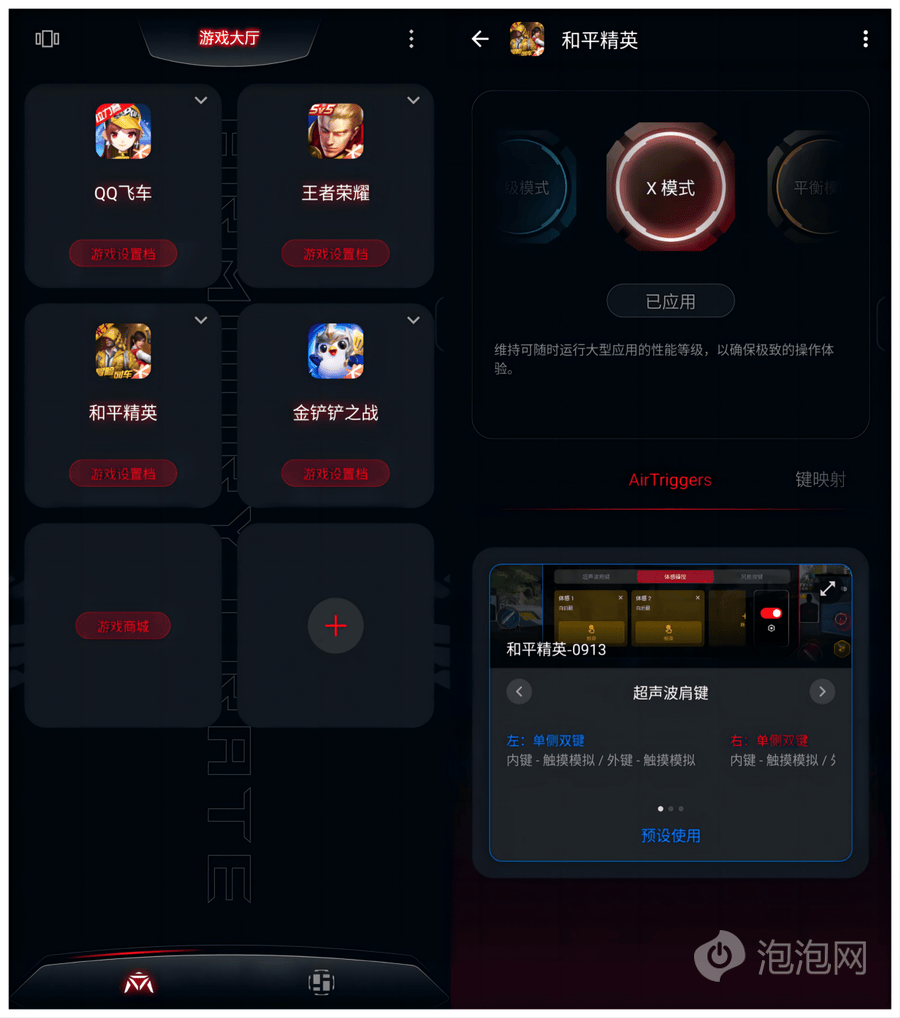 开启游戏精灵功能后,在游戏过程中,我们可以通过从屏幕左上角或者右上角向内侧滑动来开启游戏精灵界面,AirTriggers肩键以及体感操控功能,就是在游戏精灵中进行设定的。
