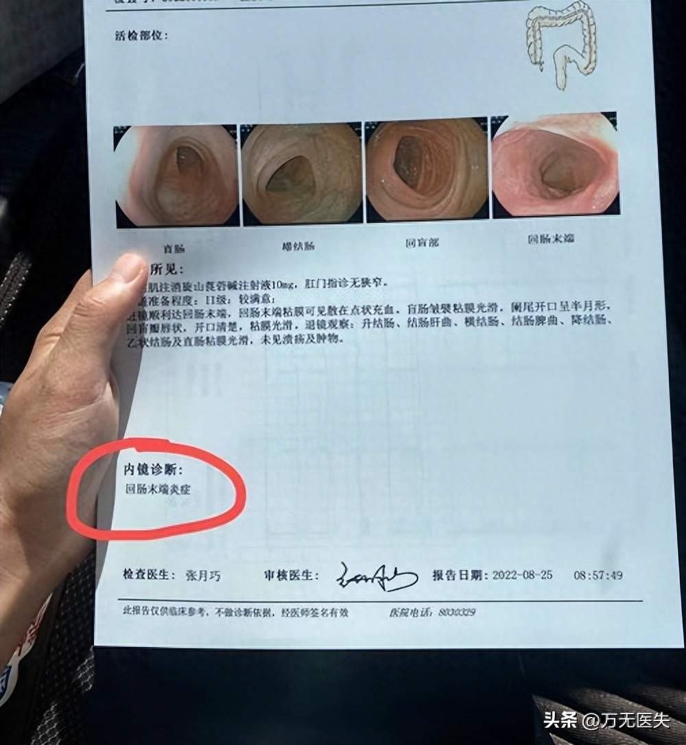 其次,检查过程中,患者将身穿开裆裤(医院提供)侧卧在床上,肠道里的情况会通过摄像头投放在大屏上。一旦发现息肉,医生会将照片打印出来。