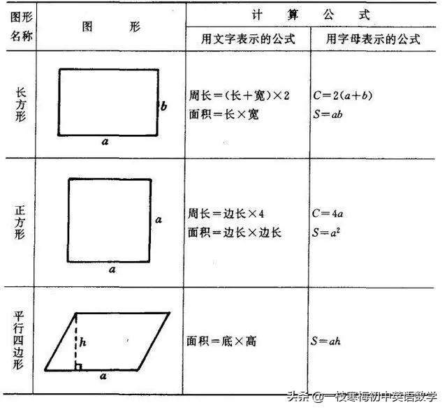 小升初常见图形的面积和周长公式,我们一定要熟练记忆并灵活运用!