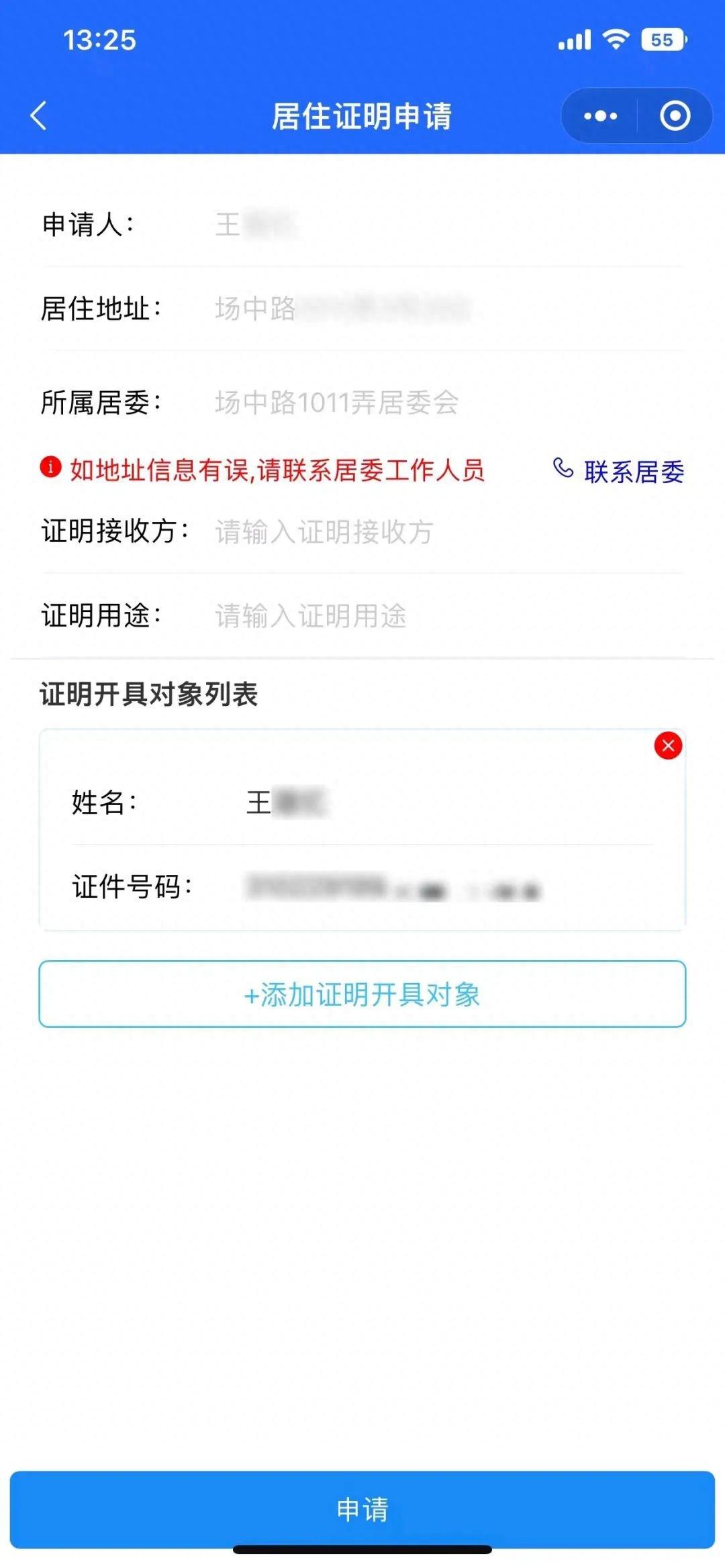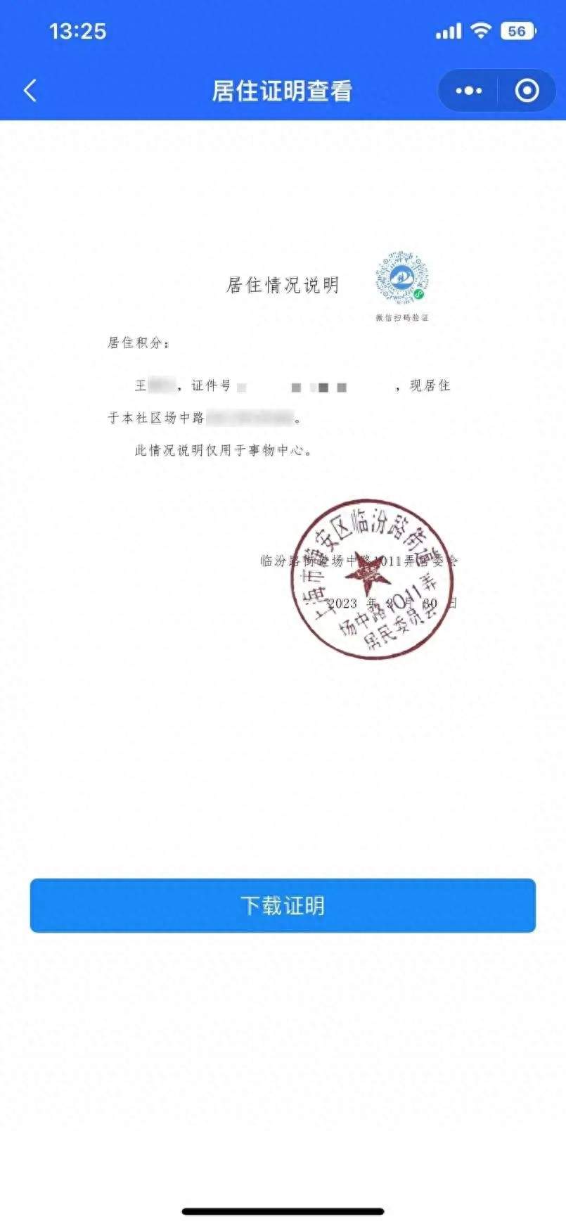 ,若居住信息正确,证明直接生成,并支持二维码核验,