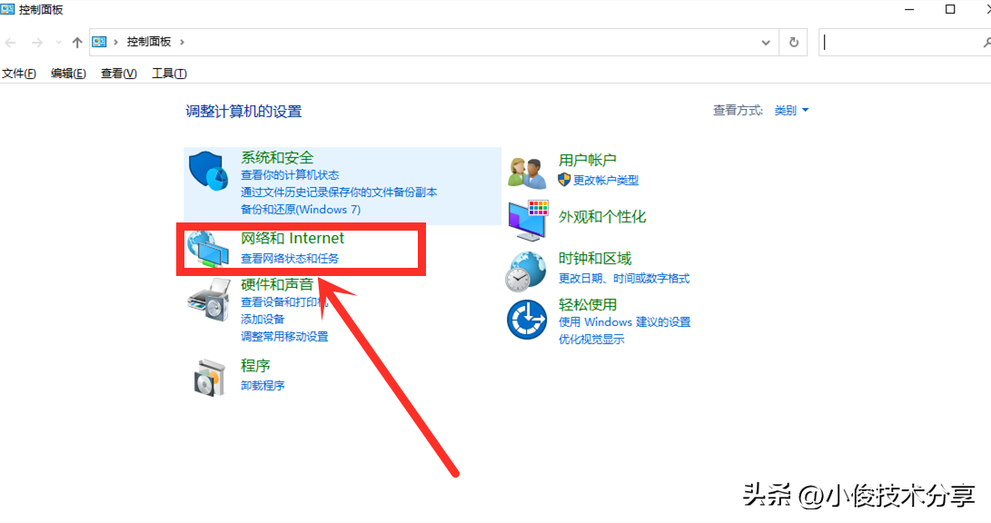 此时就会打开【控制面板】界面,在控制面板里面我们选择【网络和Internet】这个设置开关