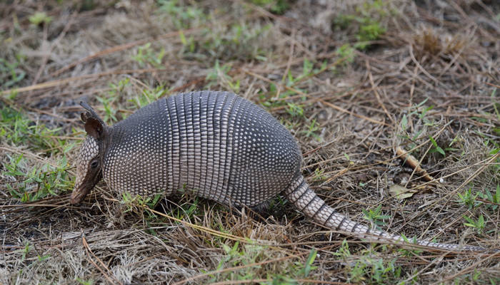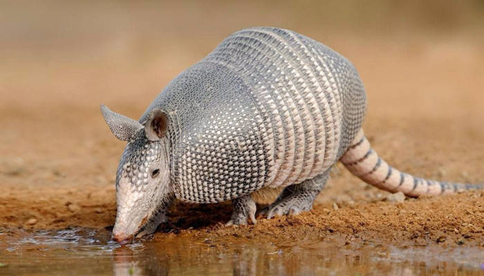 犰狳是一种小哺乳动物,与食蚁兽和树懒有近亲关系,用盔甲似的骨质甲保护自己。犰狳科,广布美国南部和南美,覆盖接合条带或角质骨板,能蜷缩成圆球以保护全身。趾具长爪,喜掘洞,齿钉状,以昆虫和其他无脊椎动物为食。大小不一,巨犰狳长约120厘米,稀有的粉红仙犰狳体长约12厘米。