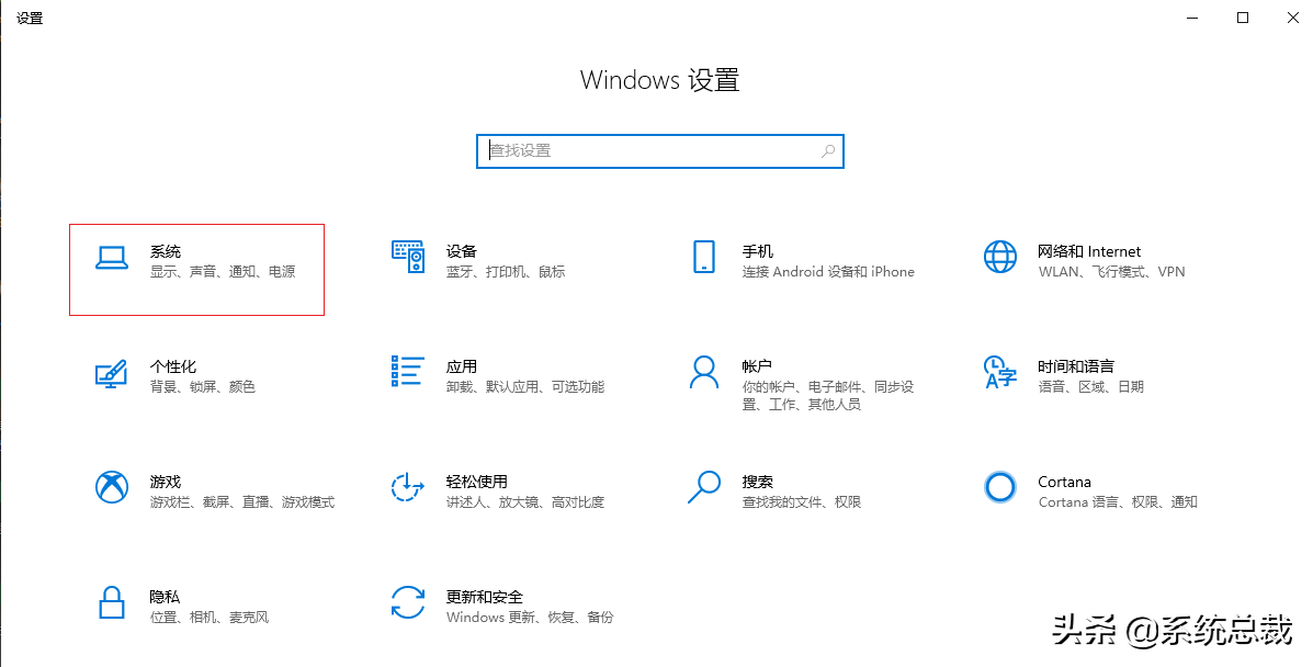 1.在键盘上按住【win i】组合键调出设置选项面板,选择【系统】进到,随后在首页下面的搜索框中输入【控制面板】并开启。