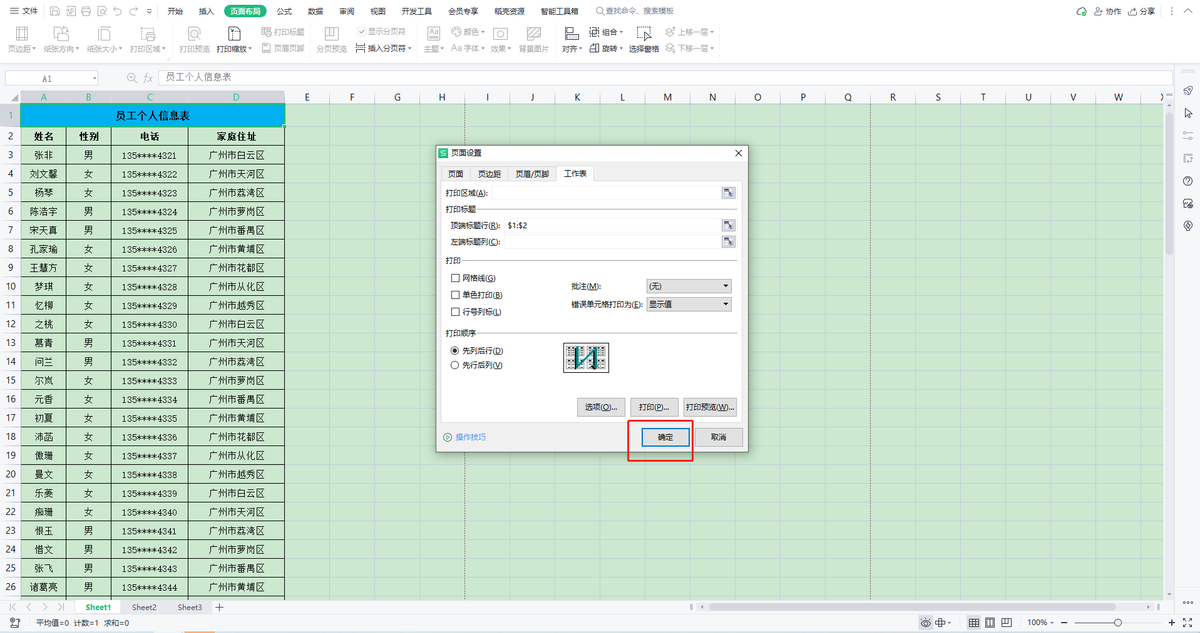 4、再选择需要打印的标题行,最后点击对话框中的“确定”按钮;