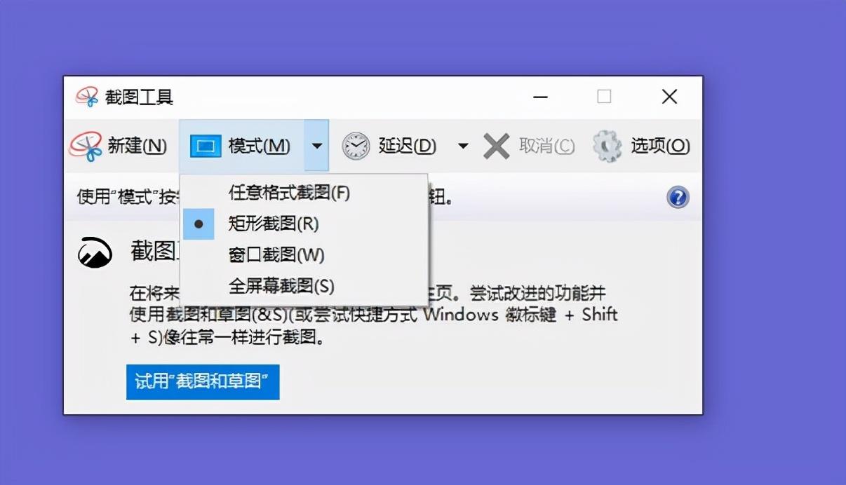 2.打开Win10的截图工具后,可以看见截图模式很多。