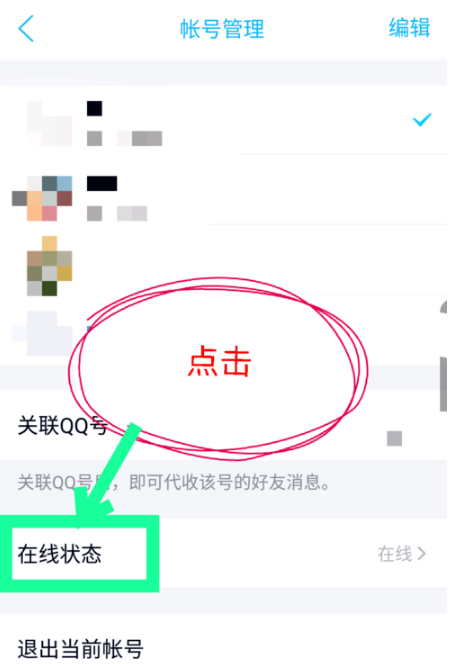 在账号管理里面,点击下面的在线状态设置选项。如图