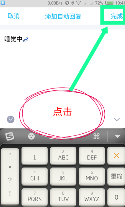 在打开的添加自动回复界面,输入自动回复的内容,点击右上角的完成。如图