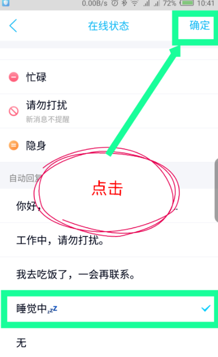 在在线状态设置里面,点击离开状态,离开的时候才可以设置自动回复。如图