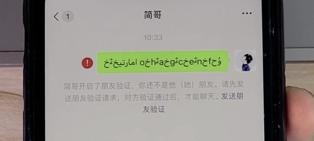 这里大家需要注意,这串字符就算发送成功对方也不会有任何显示,这也避免了一些检测好友的尴尬。