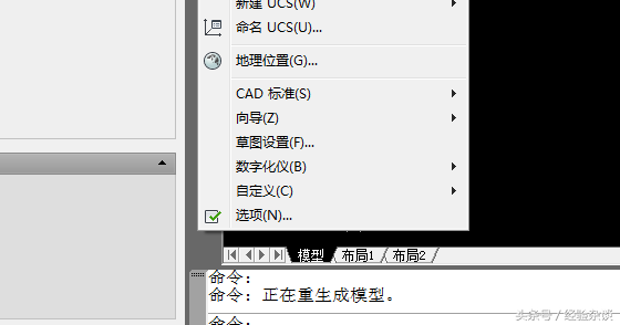 2.点击菜单栏上的工具按钮,在弹出的下拉框中选择选项这个命令,或者在CAD的绘图区按右键在弹出的列表中选择最后一个的选项命令。