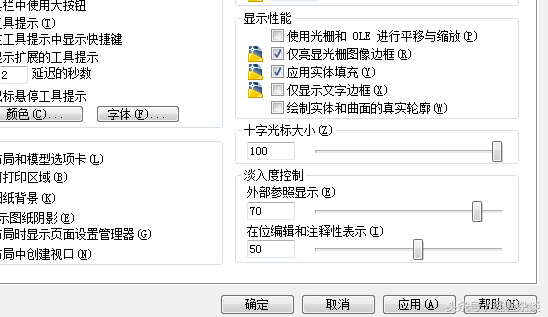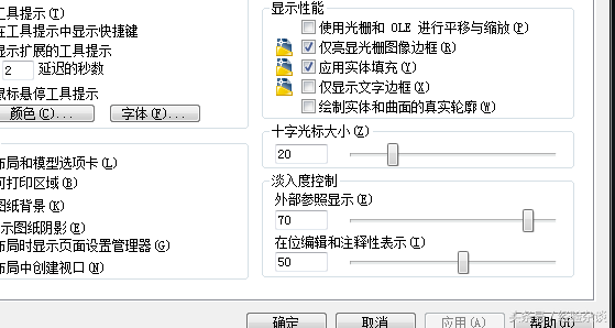 4.点击上面的显示标签,在右下角我们可以看到这样的内容:十字光标大小。这便是调整光标大小的地方。