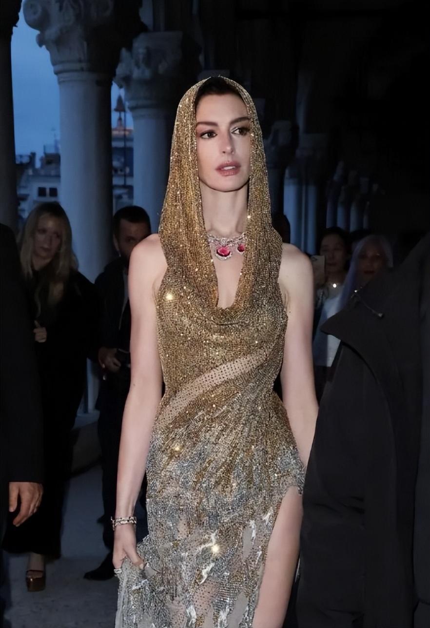 5月16日,安妮·海瑟薇亮相威尼斯活动,一袭闪片套装优雅动人,皮肤白皙紧致,妆容精致,曲线凹凸有致,一双修长美腿吸睛。