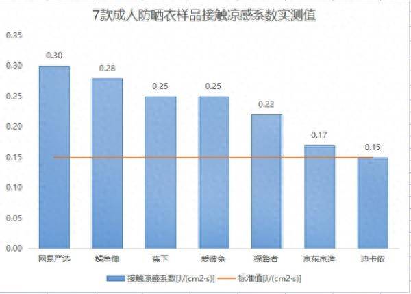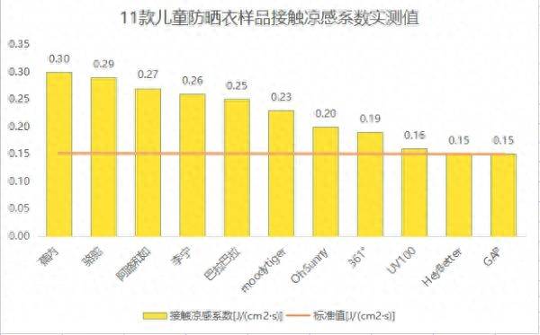 本次抽检过程中,18款样品宣称具有“凉感”相关功能。通俗地讲,凉感是指皮肤与低于其温度的织物接触时,引起皮肤温度瞬即下降,从而使人体感觉到凉爽。接触凉感数值越大表示皮肤感受到的凉感越强。经检测,受检样品的瞬间凉感性能也均符合相关标准要求。