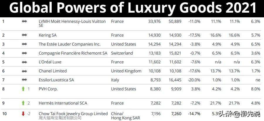 全球前十大奢侈品公司:中国企业上榜,爱马仕排第9,香奈儿排第6