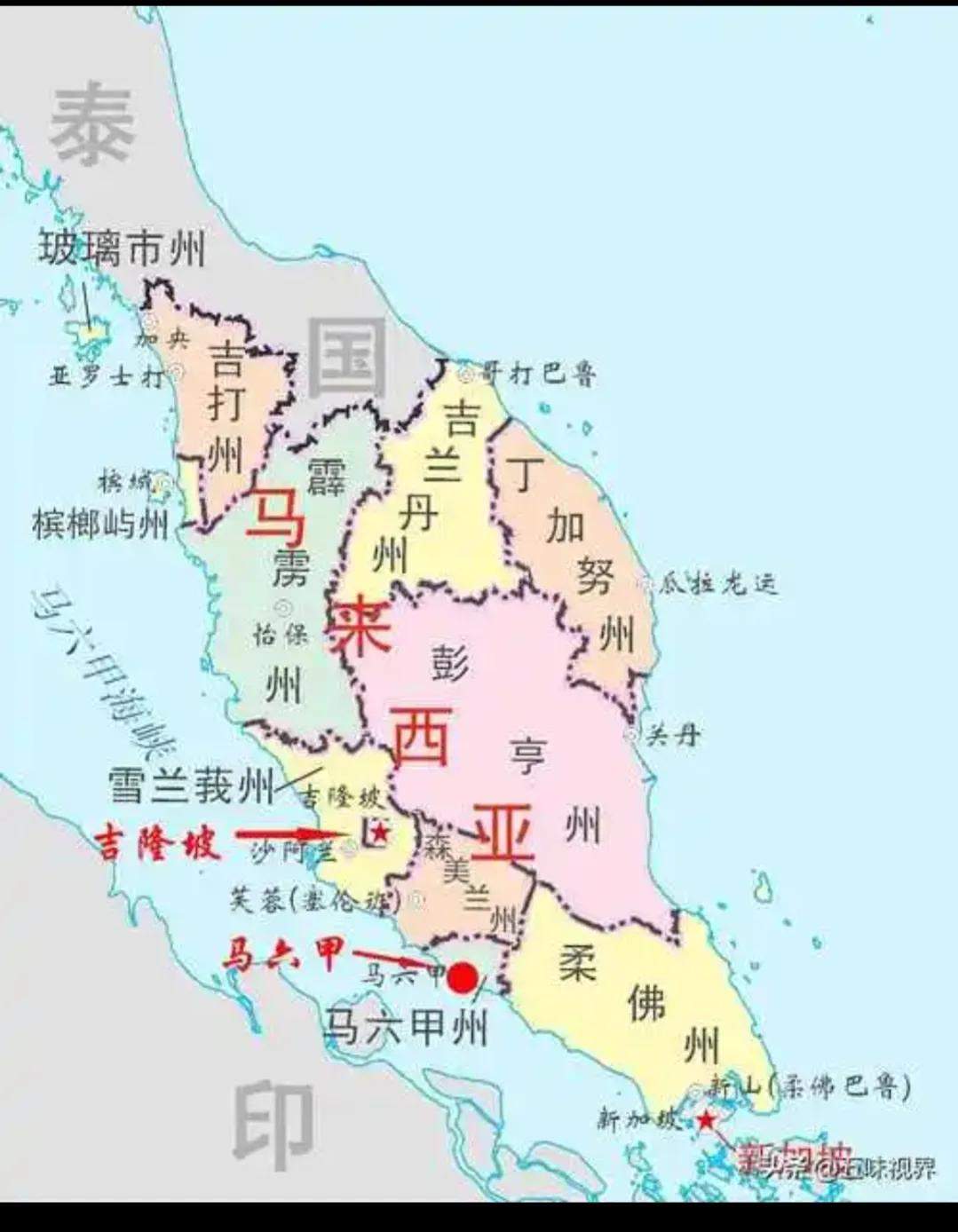 1896年,英国把霹雳,森美兰,彭亨,雪兰㦱组合在一起成为马来联邦。马来联邦首府吉隆坡。