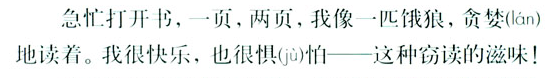 课文“窃读”,怎么“窃”的?作者找了好多证据:去几家书店才读完,贴在一个大人身边,下雨天还装着邹起眉头……同时,这些也证明了“我”爱读书,像一匹饿狼,贪婪地读着。