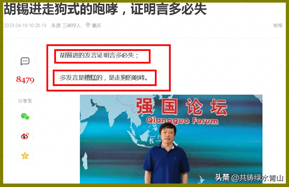 有文章称:胡锡进的发言证明言多必失;很多发言是糟糕的,是走狗的咆哮。