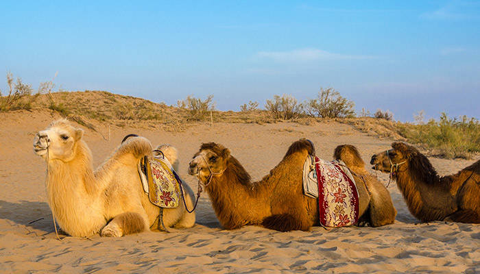骆驼寿命约30-50年,是食草动物,同时又是像牛羊一样地同类反刍动物。骆驼吃沙漠和半干旱地区生长的几平任何植物(包括盐碱植物),主要以梭梭、胡杨、沙拐枣、仙人掌等各植物为食。骆驼吃草料的时候,胡吃海喝,囫囵吞枣,吃饱了喝足了,在履行完为主人服务的职能之后,等到休息的时候,再重新进行反刍、细嚼慢咽先前吃进去的草料,有的地区俗话叫“倒磨”,书本上叫“反刍”。骆驼的喝水量很大,一次性喝水也很多,所以既耐力又耐渴因此特别适合在沙漠作为运输工具使用。