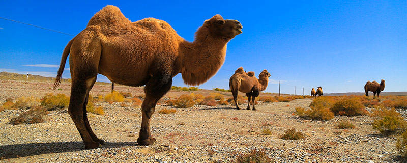 头体长3.2~3.5米;肩高1.6~1.8米;体重450~680千克。巨大的有蹄类,背上有两个驼峰。头小,颈长而且向上弯曲,体色金黄色到深褐色,以大腿部(股部)为最深。在冬季颈部和驼峰丛生长毛,有双行长长的眼睫毛和耳内毛抵抗沙尘,而缝隙状的鼻孔在发生沙尘暴时能够关闭。野生双峰驼比家养双峰驼体型较小而轻捷,它的驼峰显著地小且吏接近圆锥形,毛被也较薄。 2、单峰驼