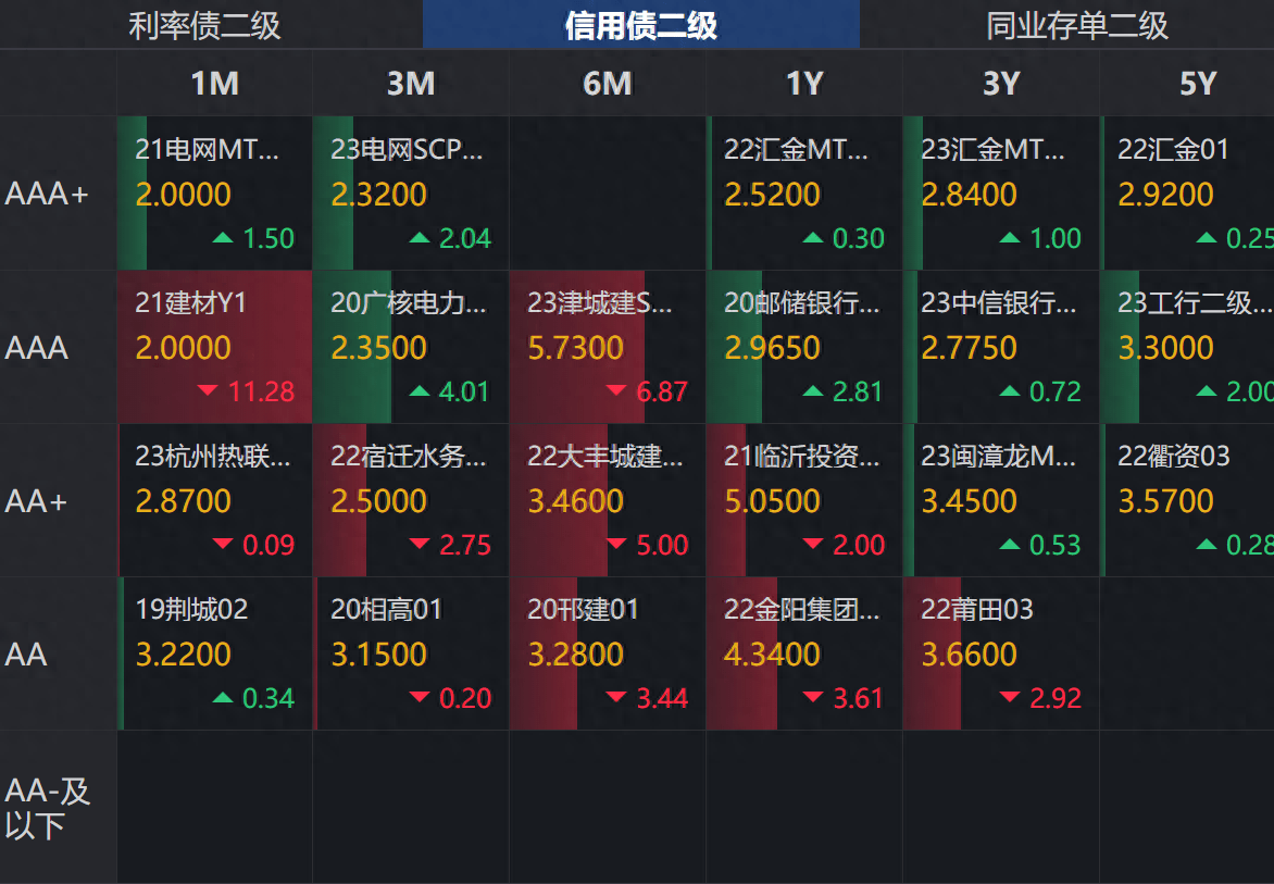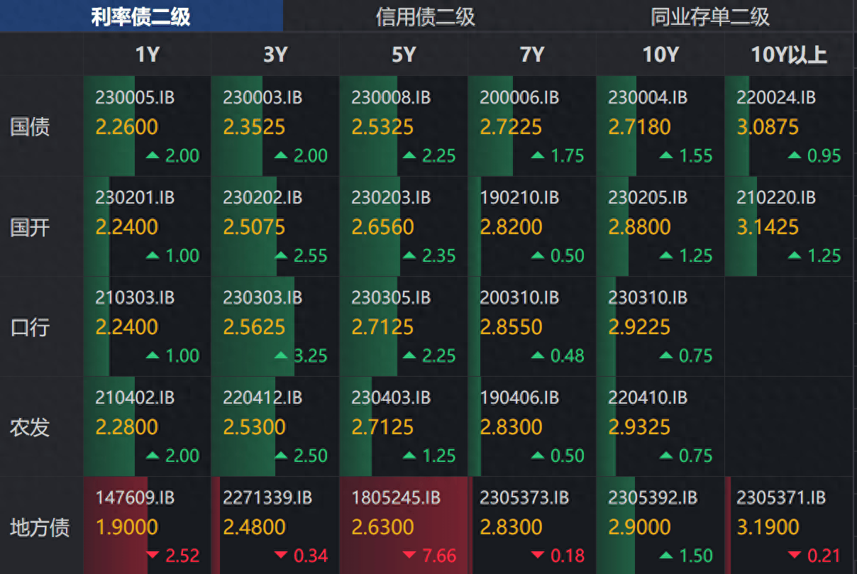 利率债和信用债今天整体走势