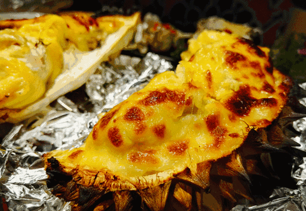 烧烤方法有,碳烤、煤气炉烤、烤箱烤。烤的方式有整个烤、和挖肉烤。尤其是生到榴莲肉都没有软的那种,整只榴莲丢到炭火上烤到皮裂,然后再挖肉出来直接烤肉,生脆的地方烤出来简直香脆到不要不要的。