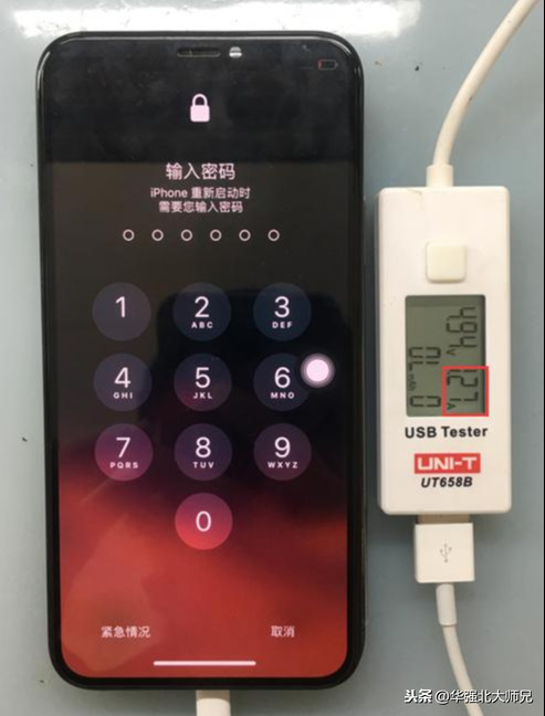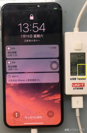 拿到机器后测试,实测故障为可以识别到数据线插入。也有充电图标但是没有一点充电电流。