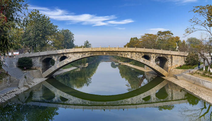 赵州桥始建于隋朝。赵州桥又名安济桥,当地人称之为“大石桥”,其位于河北省石家庄市赵县城南洨河之上的石拱桥,因赵县古称赵州而得名。赵州桥是世界上现存年代久远、跨度最大、保存最好的单孔坦弧敞肩石拱桥,在中国造桥史上占有重要地位,对全世界后代桥梁建筑有着深远的影响。