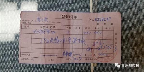 挂了电话,韩女士再一细看,之前男子叫她签名的是一张 “送(销)货单”,在让她付款前,男子让她签名的位置是这张单子上的“收货单位(人)”处。下面落款处有一个公章,只留了一个“2”开头的8位数字的座机号码。