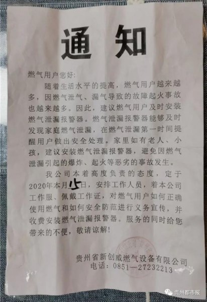 她赶紧拨打96977,贵州燃气客服答复:他们公司没有开展安装“燃气报警器”这项业务,也从来不会给客户推荐或安装这种设备。