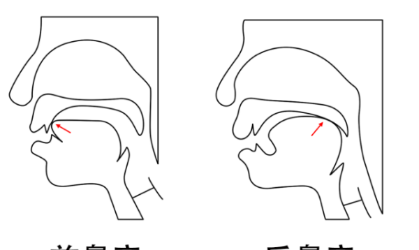 前鼻韵尾-n 的发音技巧是,发音收尾时舌头顶住齿龈,口腔里舌头与齿龈形成阻碍而完全闭塞,软腭下垂,使鼻腔通气。