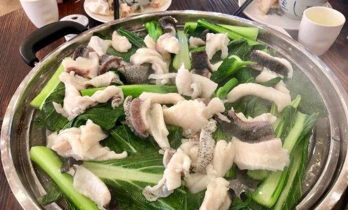 5、捞起鱼片放到春菜上,倒上热汤即可。