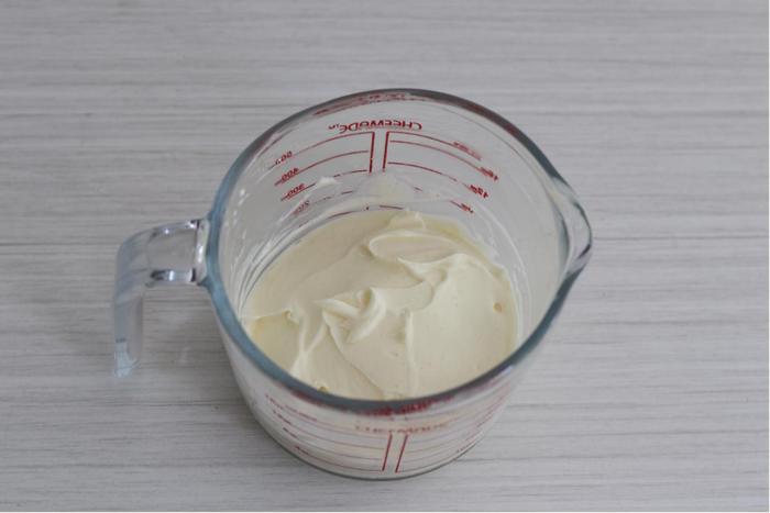 3、食材中的吉利丁片也要提前用冰水浸泡。做好的慕斯糊要放进冰箱里冷藏至完全凝固再拿出来。