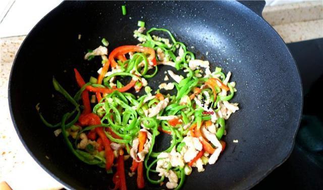 7.炒至青椒变软。