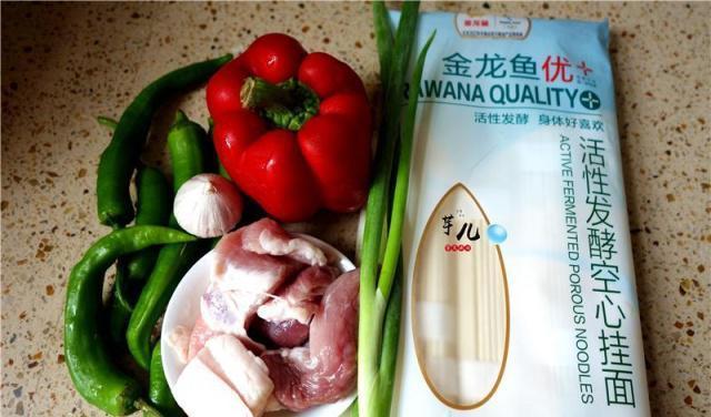 【双椒肉丝炒面】食材:猪肉 300克,金龙鱼活性发酵空心面 一把,青椒 6个,甜椒 半个,大葱 一根,大蒜 一个。