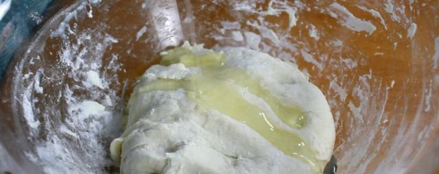 3、20分钟之后,我们的面团已经饧发好了,饧发好后就开始准备包馅料,先准备一个干净的盘,然后在手上和盘子上都抹上食用油。用手揪一团小剂子,捏成中间厚边缘薄的面皮。用勺子将馅料放到面皮上,然后收口,像包包子一样收口就可以了,收口一定要捏紧,不能露馅。包好馅料之后先揉圆,然后再按扁,之后放到我们之前抹好油的盘子中备用,将所有的面团都做成这样的生胚。