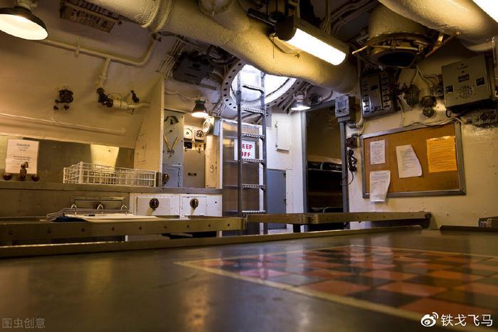 接着就是舷侧主装甲带与主防雷装甲带,这两种装甲焊接为一体。倾斜19°,厚度为307毫米。主装甲带结合多重水密隔舱和3层船底构成了水下的防鱼雷系统。