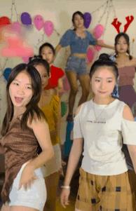 镜头前,她露出肩膀和大腿,不自然地晃动着身体,搔首弄姿,努力寻找着合适的节奏,尝试融入其中。