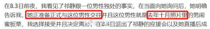 而这位男性就是去年10月祁静“床照”中所谓的男闺蜜。