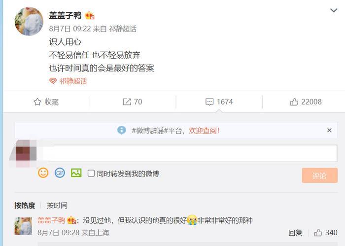 榜一大哥的事件发酵之后,祁静在自己的小号上说:“时间真的会是最好的答案。”